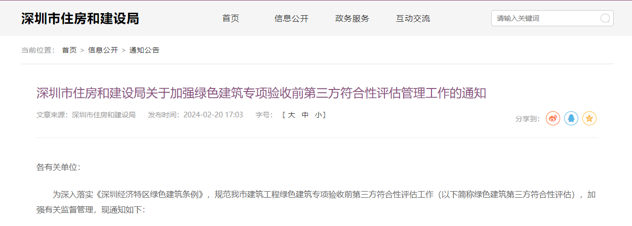 四、市住房建設主管部門在其官方網站及時公布、更新在深圳地區開展綠色建筑第三方符合性評估工作的機構名單,并納入建筑市場主體信用管理。